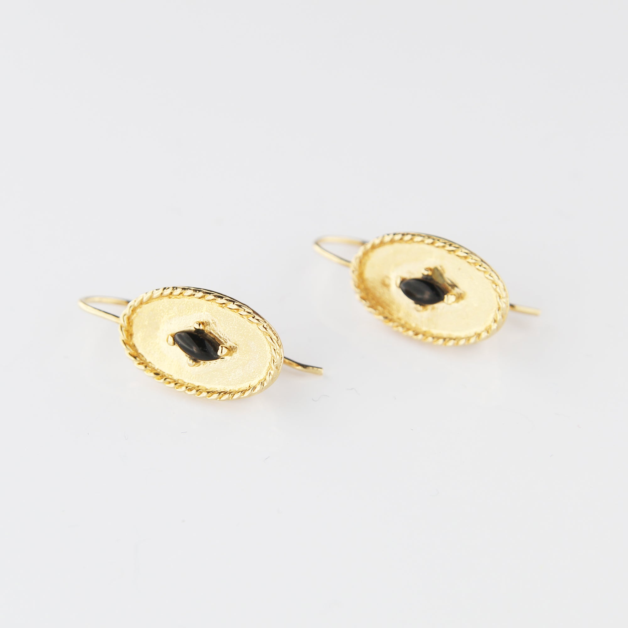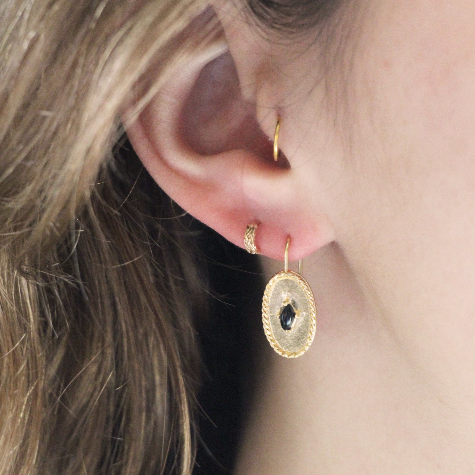 BO dormeuse en plaqué or avec pierre onyx noire.