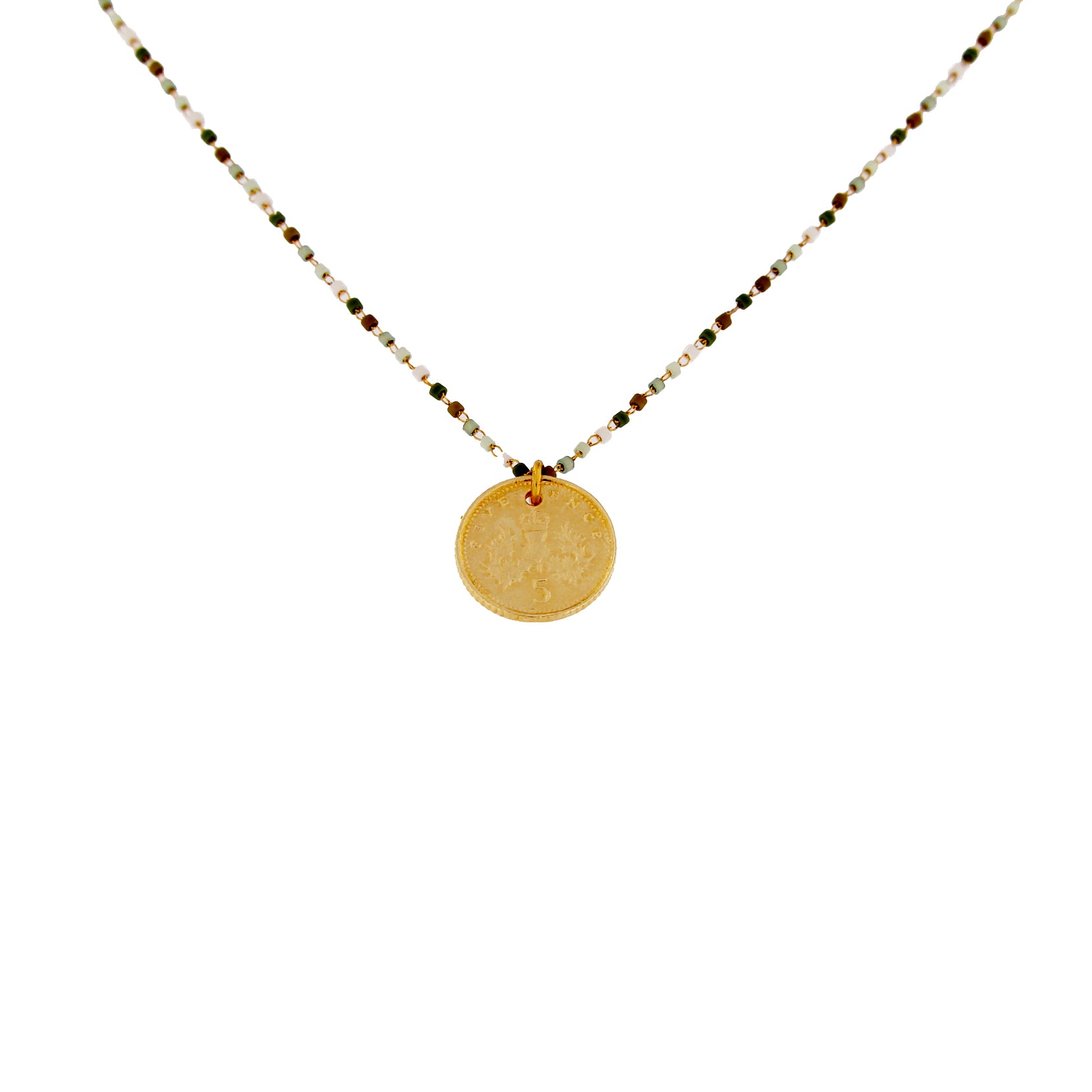 . Pendentif médaille pièce de monnaie 17mm doré à l'or fin.