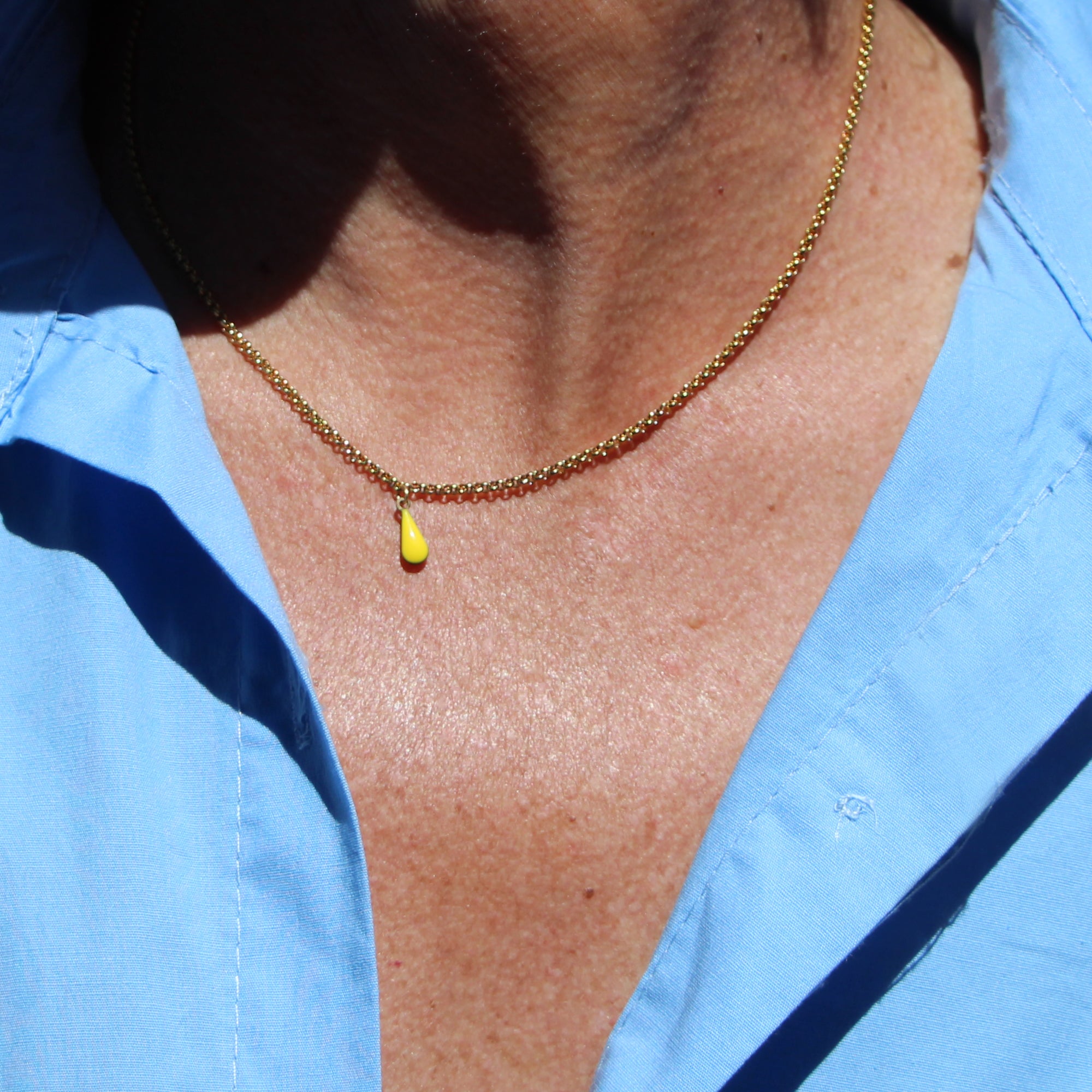 . Pendentif : goutte émaillée jaune